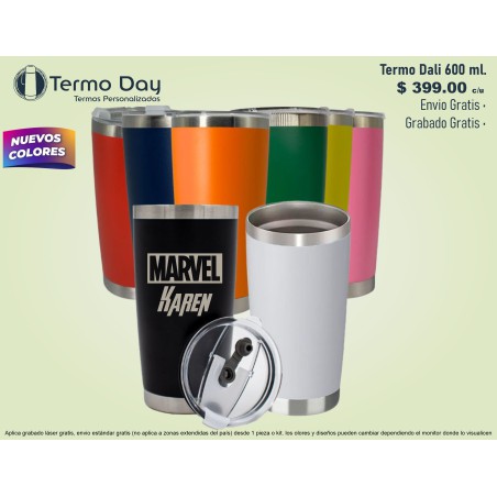 Vaso termo, con tapa hermética de acrílico transparente con orificio para popote. Fabricado en acero inoxidable de grado alimenticio,con doble pared y aislamiento al vacío